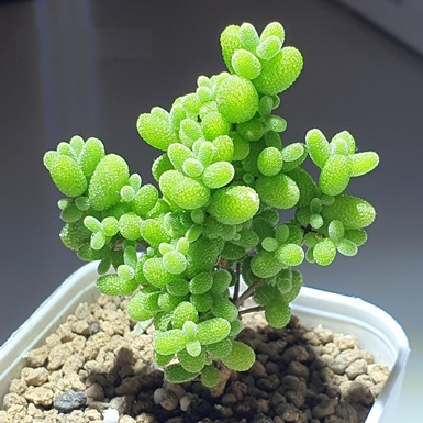 Mesembs is a common popular term used for succulent members of the family Aizoaceae, which are often placed in a separate family of their own, Mesembryanthemaceae. They are sometimes also referred to as vygies, fig-marigolds, ice plants, midday flowers, living stones or flowering stones. They display remarkable variation in leaf architecture, flower colour and form as well as fruit structure. Therefore these plants fascinate many plant lovers of all ages and have become popular amongst collectors of succulent plants. They make excellent potted plants. Drosanthemum is a genus of succulent plants in the ice plant family native to the winter-rainfall regions of southern Africa. Most species bear colourful flowers. The name Drosanthemum means Dew-flower in Greek, and refers to the characteristic shiny translucent papillae, which cover the succulent leaves and flower buds. There are over 110 species of Drosanthemum found in the arid areas of South Africa and neighbouring Namibia. The Drosanthemum genus is perhaps the most popular and spectacular of all garden mesembs. Few other plants can match the glowing intensity of a stand of these mesembs in full flower.