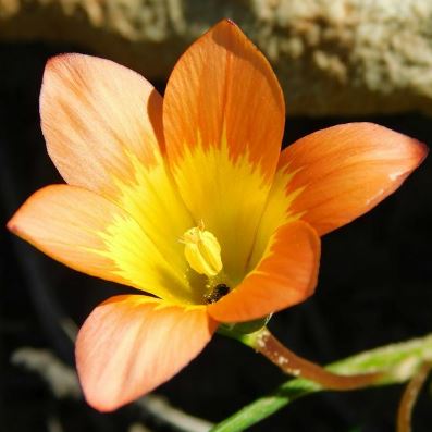 Romulea is a genus in the Iridaceae family of about 90 species that is found both in South Africa and in Europe. Rootstock is a corm, globose, bell shaped to top shaped, compressed or asymmetric with a circular to crescent shaped basal ridge. This genus has flowers reminiscent of Crocus. Many are quite striking, especially the South African species and there is a great variation in colour and markings of the flowers. They are easy to grow in pots and many are easy from seed, flowering rather quickly in some cases.